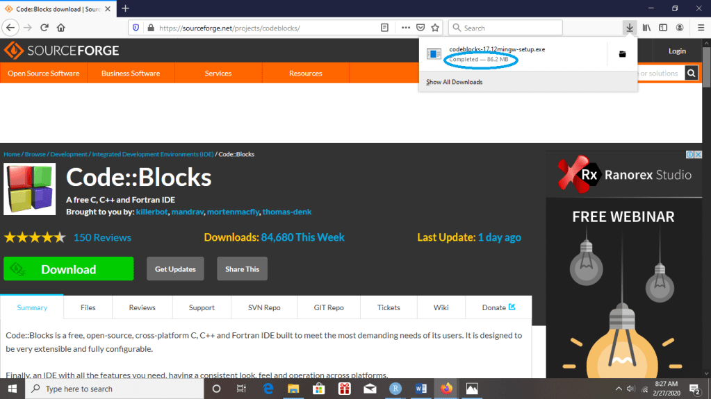 3. Setelah muncul tampilan seperti dibawah ini, klik web “Code::Blocks IDE.
