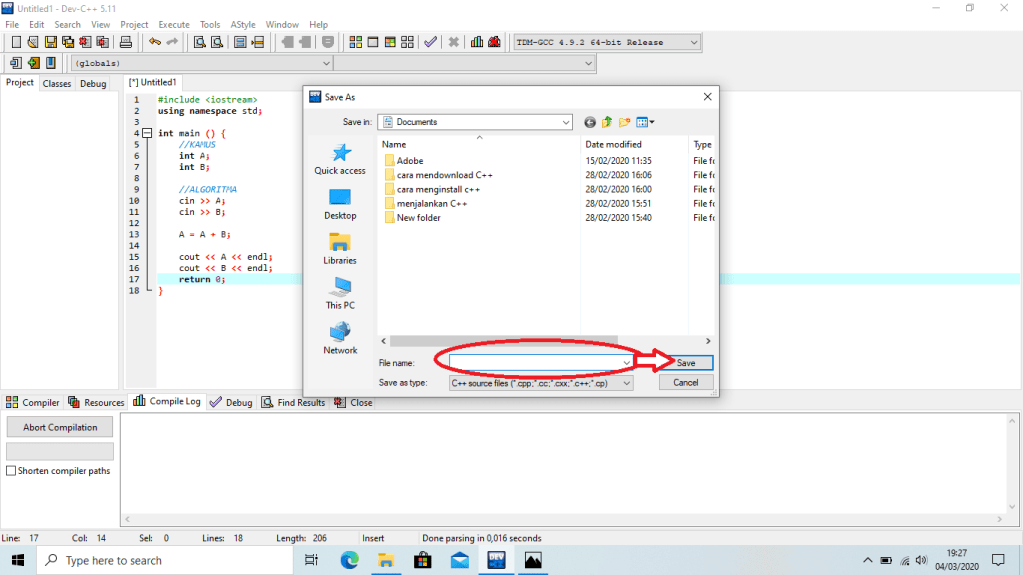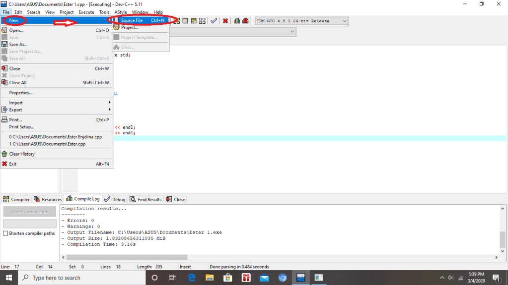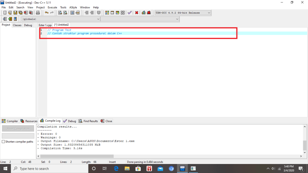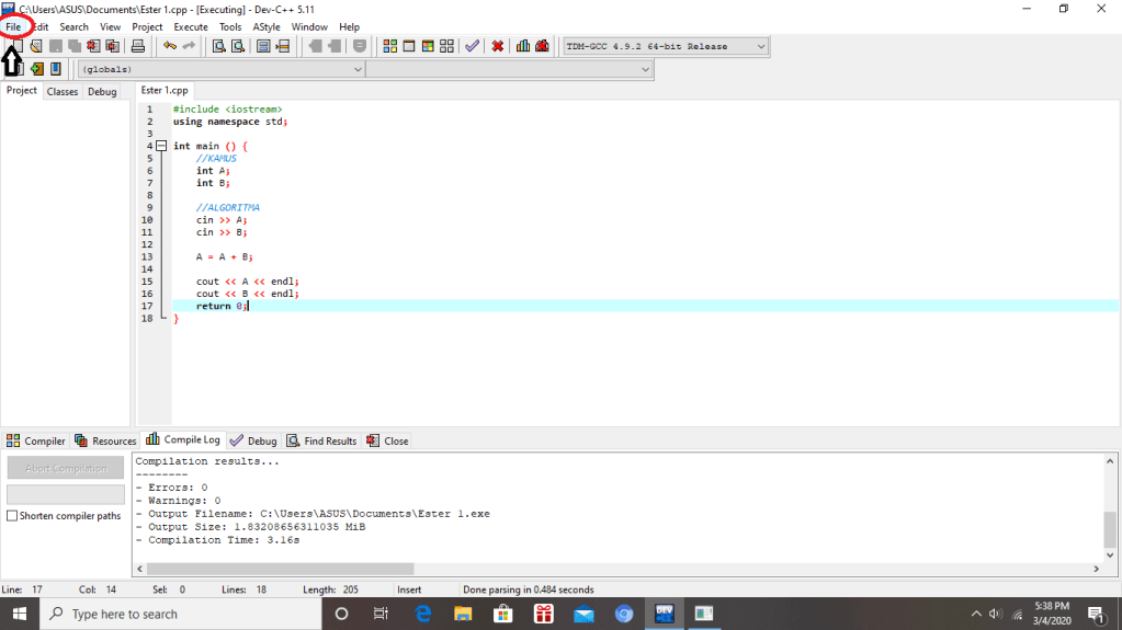 Demikianlah penjelasan saya mengenai tutorial pengoperasian C++ dengan DEV-C++.