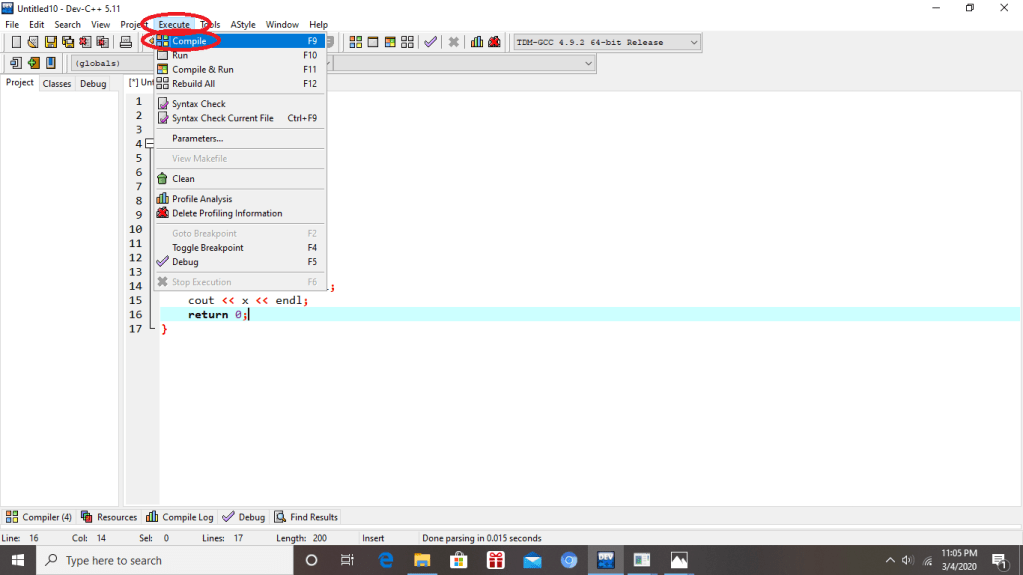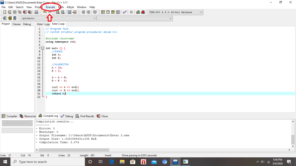 6. Selanjutnya, klik menu “Execute” lalu pilih menu “Compile” untuk menyimpan project keempat yang telah dibuat tadi.